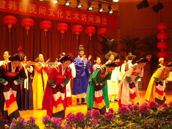 为晋升文化咀嚼,第五届(中国·金坛)国际剪纸艺术展暨金坛市第四届文化艺术节组织委员会特邀韩国最具传统文化特色的民间艺术团来坛表演。此次来坛表演的韩国南原市立国乐团既是演奏集体,也是著名韩国清唱家们的勾当舞台,它作为国乐教诲场合在传承全罗北道南原国乐方面担负着中枢作用。该团拥有全罗北道无形文化工业第二号水宫歌保有者朴良德名唱家以及姜道根先生的大门生李兰草名唱家等45名团员,常常受邀至美国、新加坡、中国、日本等外洋国度,每年巡回表演次数多达150多次。剧团“创作剧会”是在全国演剧比赛得到3次最优奖(总统奖)的大韩民国屈指可数的演剧专业集体。整场表演由9个种类各异、表示形式新颖、艺术水准较高的节目构成,在1个半小时内通过四物游戏、巫舞、韩国清唱、闹良舞、扇子舞、“长唢呐”演奏、重现韩国“传统成婚日”、花冠舞、光景游戏全面揭示了韩国传统文化艺术的风范。