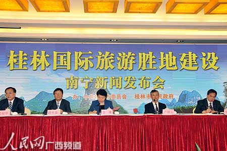 2013年3月26日,桂林国际旅游胜地首场新闻发布会在国务院新闻办举行,“国”字号桂林国际旅游胜地实现高起点发布。紧接着,桂林市委、市政府又派团赶赴香港、深圳发布此消息,“桂林旋风”迅速吹拂海内外,受到了国内外的广泛关注、鼓励和支持。这次在广西首府南宁举行的新闻发布会是桂林市宣传推介桂林国际旅游胜地建设活动的第四站。
