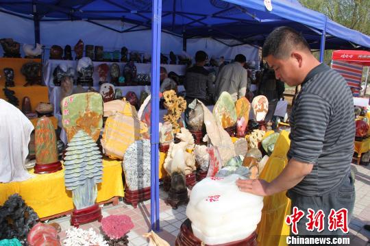 新疆伊犁第四届杏花旅游节8日在伊宁县开幕,奇石展备受石友和游客关注。据旅游节组委会相关负责人称,室外展位共150个,参展者来自疆内哈密、克拉玛依、博乐等地州市以及疆外山东等省市,每天吸引游客10万余人次,日成交额突破30万元人民币。奇石展将持续一周。