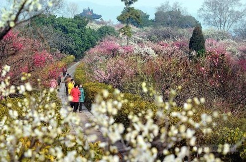 整个梅花山成了花的海洋,红的、白的、淡绿色的花海波浪起伏,来自全国各地的游客摩肩接踵。到梅花山看花有怎样的最佳线路?现在这个时期推荐大家最佳的赏梅路线就是从大象路,从梅花山的南坡上山到达最高点的博爱阁的位置,可以从山顶俯瞰一下梅花山的美景,然后下来往孙权纪念馆的位置,穿过红楼苑下山是最佳的一条赏梅路线。