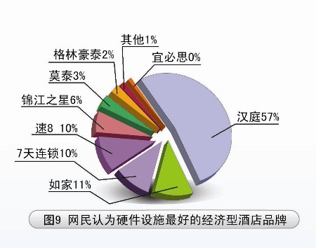 在答复"您以为价值最优的经济型旅馆品牌"这一问题时,57%的网民选择了7天连锁;在答复"您以为硬件设施最好的经济型旅馆品牌"时,汉庭名列第一;在针对处事的观测中,金坛旅行社 ,58%的网民认为锦江之星处事最好。