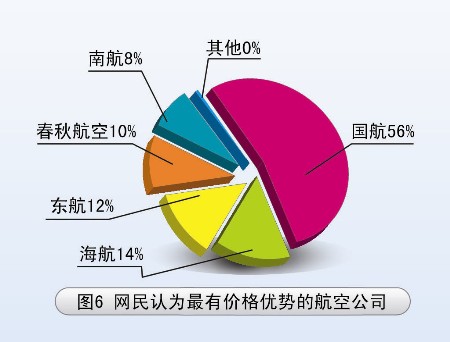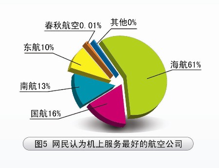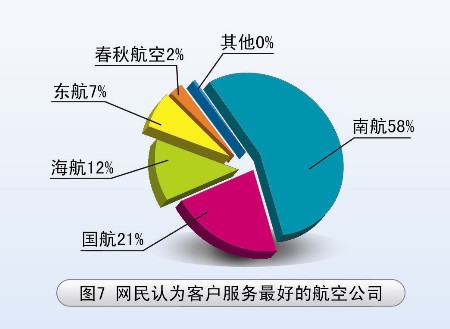 本部门及以下的经济型旅馆存眷排名和租车公司存眷排名,均通过网络观测的方法相识国民意愿,共接纳有效问卷3416份。 观测显示,58%的网民首选南航,61%的网民认为海航是机上处事质量最好的航空公司,56%的网民认为国航是最有价值优势的航空公司,58%的网民认为南航的客户处事最好。可见,客户处事是航空公司得到首选的要害。