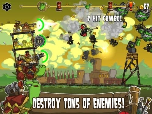 这是一款回收2D手绘气势气魄建造的横版射击游戏,画面富含多种元素,卡通气势气魄带来竹苞松茂的视觉结果。游戏中玩家将要饰演一只背上装备着炮塔的乌龟,而前方则是无数来阻扰的炮灰哥布林,玩家只需要举办简朴的操纵就能发射出各类范例的炮弹。