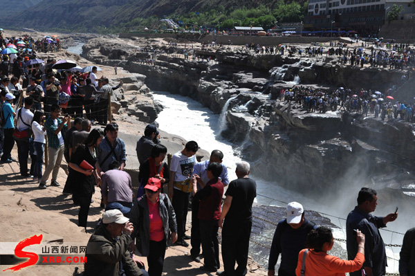 山西新闻网5月2日讯(记者 宇巍 通讯员 吕桂明)“清明” 旅游小高峰刚刚落下帷幕,“五一”小长假,吉县黄河壶口瀑布再掀旅游高峰,来壶口瀑布观光旅游的游客络绎不绝。