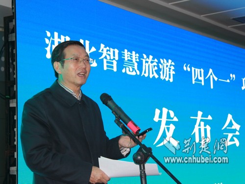 湖北省旅游局局长张达华出席伶俐旅游“四个一”成就宣布会并发言。