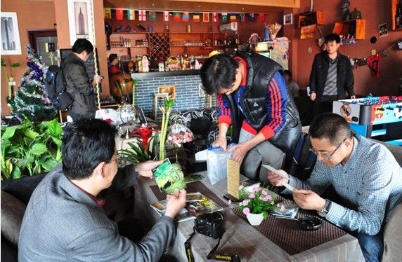 4月4日,清明小长假第一天,登封市攀缘国际青年旅舍的荼蘼咖啡馆中迎来了一批非凡的客人。他们披星戴月,都佩带着【豫聚团】的闪亮徽章,微博不离手,成为一道奇特的风光。来到咖啡馆中,他们热络地接头起河南行旅的趣闻和故事,引得其他顾主都热情插手。
