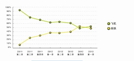 跟着全国各条高铁线路的慢慢开通,航空公司努力应对挑战,高铁运行慢慢揭示优势。陪伴高铁处事的完善和线路包围延伸,国民出行习惯正在调解变革。陈诉组从2011年第二季开始以“高铁时代,您坐飞机照旧火车”为题举办持续性观测,跟踪变革。