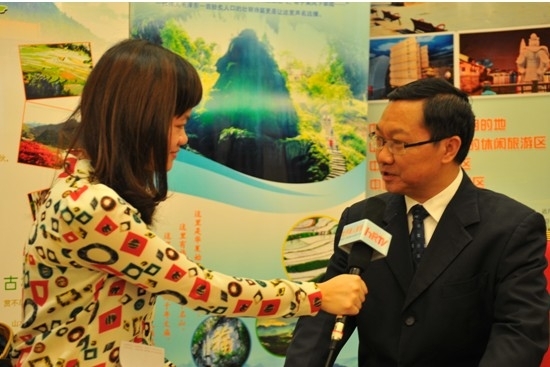 上图:湖北省来凤县旅游局局长徐毓吾接管媒体采访