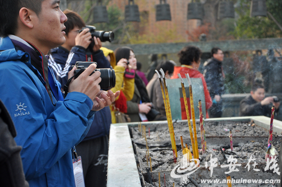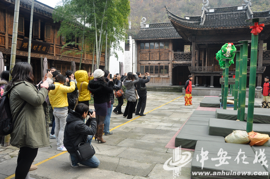 网媒记者用镜头记录天目湖出色的舞狮演出