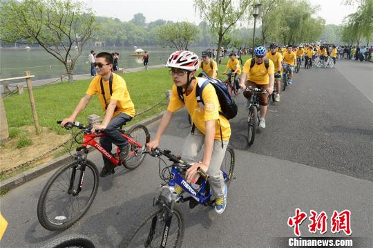 中新网杭州5月6日电 (杜悦)五四青年节,2013中国杭州大学生旅游节正式启动。在游人如织的西湖,1000余名大学生以西湖十景为会场,骑游杭城,行走西湖,将简单的行为艺术融入风景,用他们的方式,诠释不一样的西湖十景,演绎了一场杭州版的《致青春》。