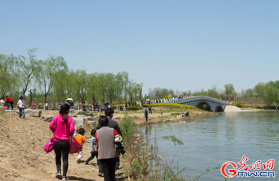 4月30日,旅客在北京市大兴区南海子郊外公园休闲。“五一”小长假期间,北京市民选择市区周边的郊外公园短途出游,金坛旅行社 ,在郊外公园内搭帐篷、住房车,与家人享受轻松假期。光亮网记者廖慧/摄