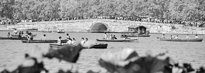 浙江杭州西湖断桥上人流如织。新华社记者 徐昱摄