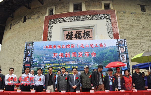 4月20日,二十集电视持续剧《远山的土楼》在福建土楼永定景区振福楼前进行开机新闻宣布会。市委宣传部副部长罗桥德,市文广新局副局长黄庆添,市旅游局副局长许敏强,县委书记毛高良,县长刘先裘,县委常委、宣传部长朱廷彬,县人大常委会副主任胡健,副县长黄华凤出席了宣布会。在宣布会上,导演介绍了电视剧创作、拍摄的环境,演员代表报告了演出体会。罗桥德、朱廷彬别离作了热情洋溢的发言,向《远山的土楼》顺利开拍暗示了祝贺。