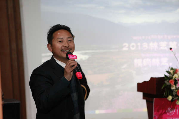 西藏林芝县副县长才旺边旦介绍桃花节筹办环境