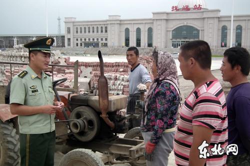 边防警官向外来务工人员进行法制宣传。李俊修 摄